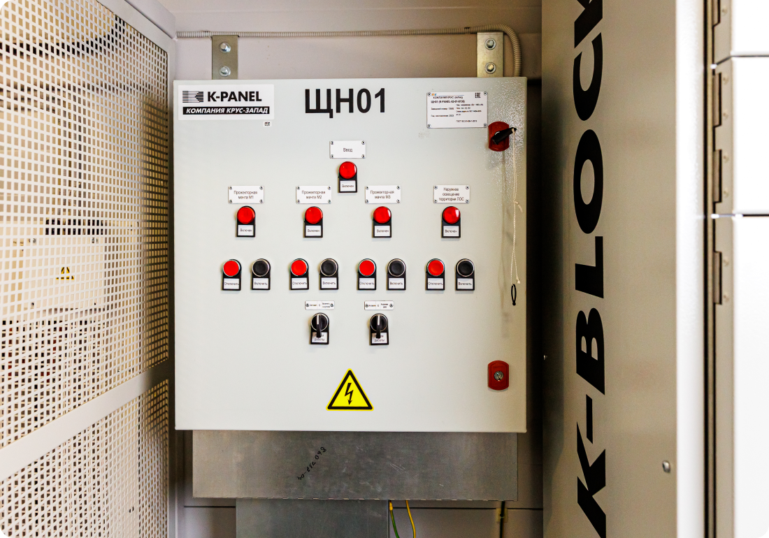 - Изготовление — сборка щитов на производстве с тестированием компонентов.